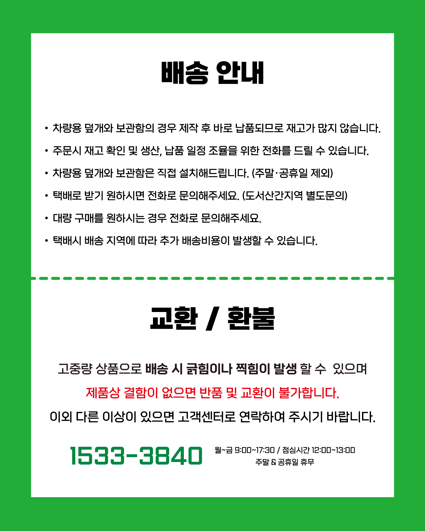 배송일과 설치장소 문의는 고객센터 1533-3840으로 문의 주시기 바랍니다.