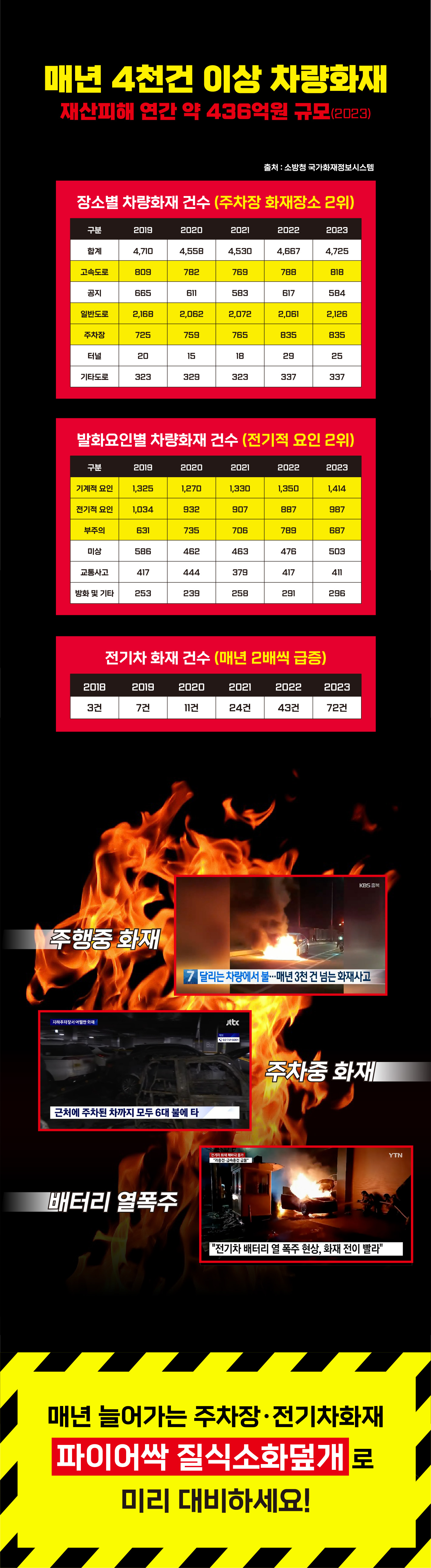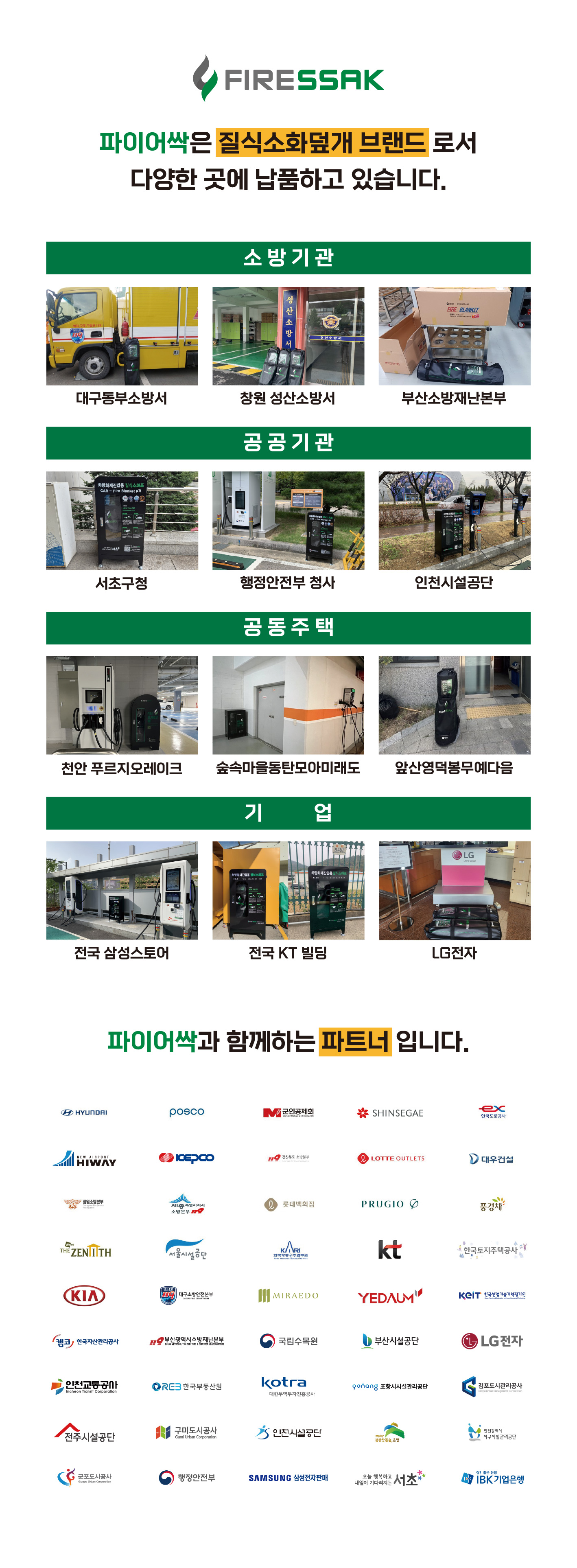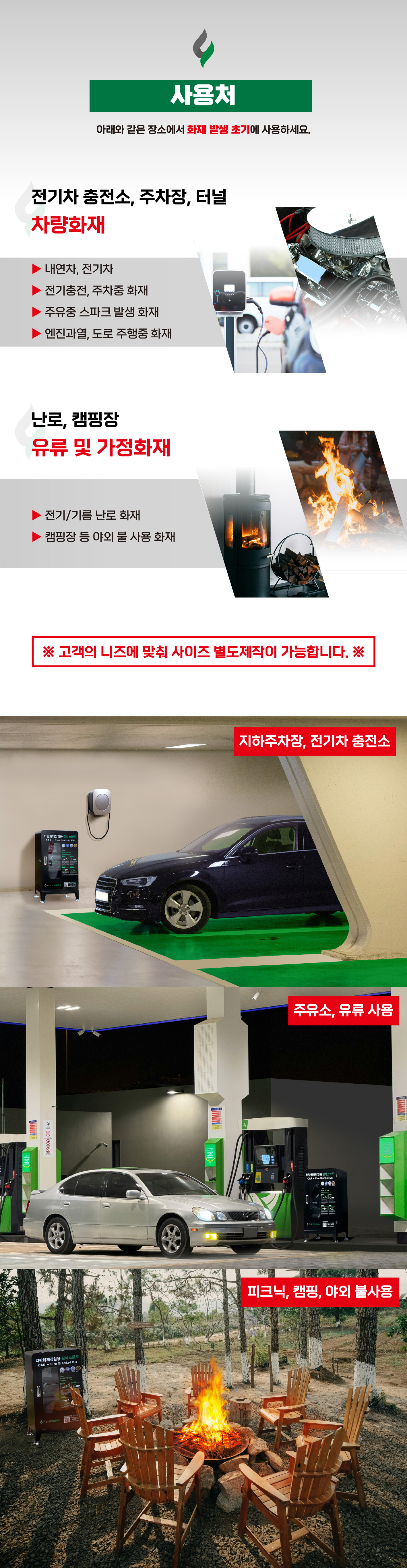 차량 화재 / 전기차 화재 / 주차장 화재 / 충전소 화재 / 터널 화재 등 초기화재진압·화재확산방지에 사용하는 제품입니다.